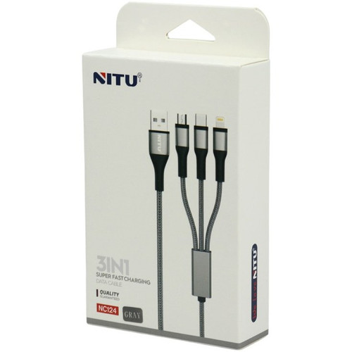 کابل 3 سر فست شارژ Nitu NC124 3A 1.2m