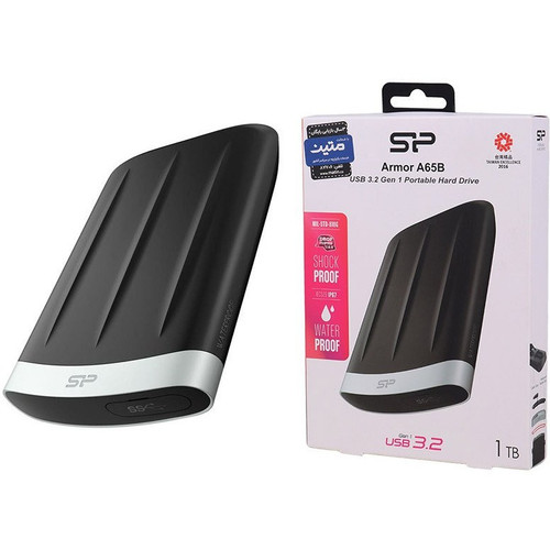 هارد اکسترنال قابل حمل برند سیلیکون پاور با ظرفیت 1 ترابایت، مدل Armor A65، دارای نشانگر LED، مقاوم در برابر ضربه، شوک، رطوبت و غبار، سازگار با Windows ،Linux و MacOS، دارای رابط USB3.0، سرعت انتقال دادهها با رابط USB 3.0 تا 5 گیگابیت بر ثانیه