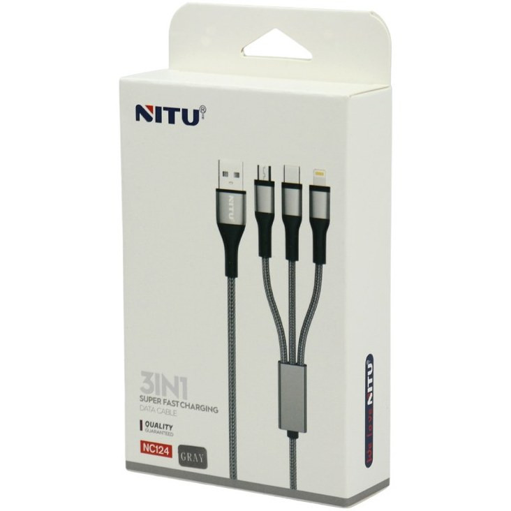 Nitu NC124 3A 3-in-1 super Fast Charging 1.2m Data Cable