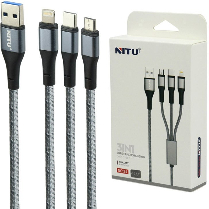 کابل 3 سر فست شارژ Nitu NC124 3A 1.2m