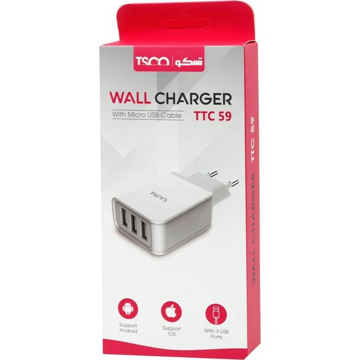 شارژر دیواری تسکو مدل TTC 59 به همراه کابل تبدیل microUSB
