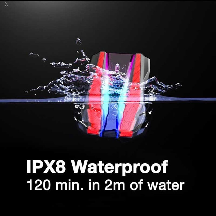 با استفاده از HD770G می توانید تمام بازی ها و اطلاعات خود را ذخیره کنید. علاوه بر این HD770G دارای استاندارد IP68 و این بدان معناست که نه تنها دارای بدنه سه لایه مقاوم است بلکه در برابر آب، گرد و غبار و شوک هم مقاوم است. از یک هارد اکسترنال نمی توان انتظاری بیش از این داشت (استاندارد IP68 به معنی مقاومت در برابر ورود گرد و غبار و مایعات به درون هارد دیسک است). HD770G حتی فراتر از استانداردهای IP68 از اطلاعات شما در برابر آب و گرد و غبار محافظت می کند. به صورت خاص می تواند 120 دقیقه در عمق 2 متری آب مقاومت کند. HD770G طوری طراحی شده است که مانند یک جنگجو سخت باشد! با رعایت استاندارد MIL-STD-810G 516.6 ، این هارددیسک اکسترنال می تواند از سقوط های ناگهانی از ارتفاع 1.22 متر جان سالم به در ببرد و از اطلاعات ذخیره شده محافظت کند. می توانید فضای ذخیره سازی محدود روی کنسول های بازی خود را، با استفاده از HD770G و فضای زیاد برای ذخیره سازی بازی های خود جبران کنید. این هارد اکسترنال نه تنها برای بازی های کنسولی بسیار کارآمد است بلکه برای بازی های کامپیوتری هم گزینه بسیار مناسبی است. برخلاف درپوش هاردهای اکسترنال دیگر که به زحمت بسته می شوند درپوش HD770G به راحتی بسته می شود و از دستگاه در برابر نفود آب محافظت می کند. هارد دیسک های اکسترنال جدید HD770G، طراحی بسیار زیبایی دارند که به این سادگی نمی توانید از آنها عبور کنید. بر روی هارد دیسک نوارهای LED RGB نصب شده است که زیبایی آنها را دو چندان می کند. البته HD770G با رمز گذاری 256 بیتی AES طراحی شده اند که حفاظت از داده ها را بهبود می بخشد. هرآنچه که بخواهید، در خانواده HD770G خواهید یافت