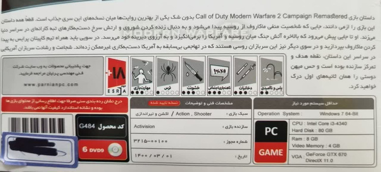 بازی CALL OF DUTY MODERN WARFARE 2 CAMPAIGN REMASTERED نشر پرنیان