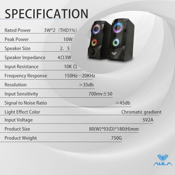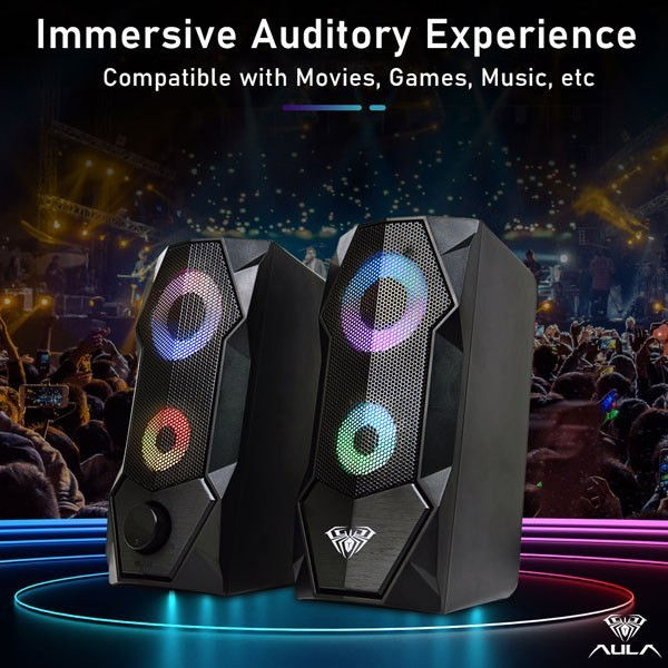 اسپیکر دسکتاپ آئولا مدل WIND N-301، درگاه ارتباطی شامل USB، جک 3.5 میلی متری صدا، دارای نورپردازی RGB، مناسب بازی