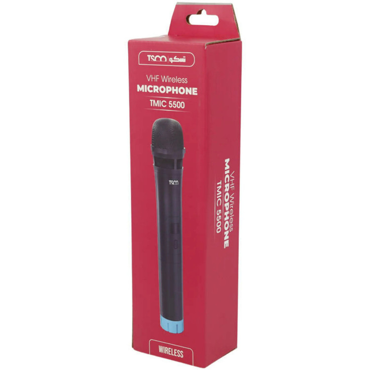 این میکروفون دارای رسیور با باتری شارژی است. میکروفون TMIC 5500 تسکو دارای جک تبدیل 6.5 میلیمتر به 3.5 میلیمتر است. فرکانس آن 250 مگاهرتز خواهد بود. این میکروفون وزن سبکی دارد. وزن آن برابر 220 گرم است. این وسیله مسافتی بین 20 تا 50 متر را پشتیبانی میکند. همچنین این میکروفون تسکو قابلیت اتصال با تمام اسپیکرهایی که خروجی میکروفن یا aux دارد